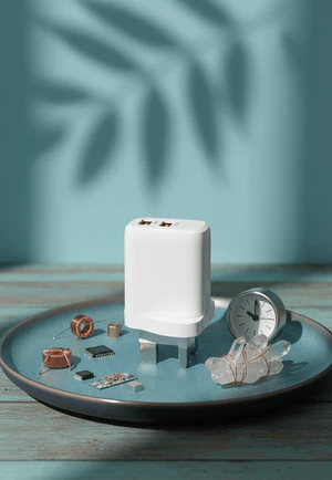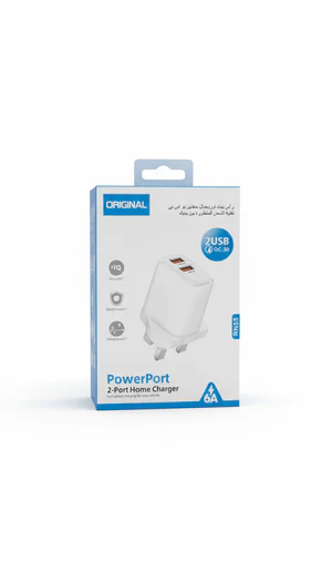 Power Port Charger— ek fast-charging wall charger jo dual USB ports ke sath smartphones aur devices ko tez aur safe charging provide karta hai ⚡.